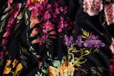- Black print with ivory, lilac and blue botanicals