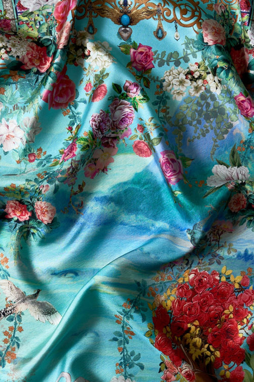Designed in Australia, The Jewellery Museum Lounge Pant weaves together the opulent mystique of Alexandria’s hidden treasures with sumptuous florals and the richness of azure skies, crafting a serene valley brimming with elegance. Lovingly handcrafted, these sumptuous silk pants capture effortless comfortability with a high waist adjustable band that cascades into a wide leg trouser, sweeping seamlessly at ankle length.