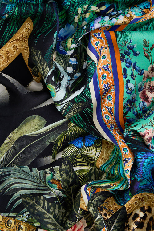 The Animal Alchemy Wide Brim Bucket Hat is a handcrafted silhouette designed by our in house artisans. Reimagined in an exclusive limited edition print, our wide brim bucket hat is illustrated with a contrasted printed lining and raw raffia trim. A statement, shade piece for sun-soaked escapes.