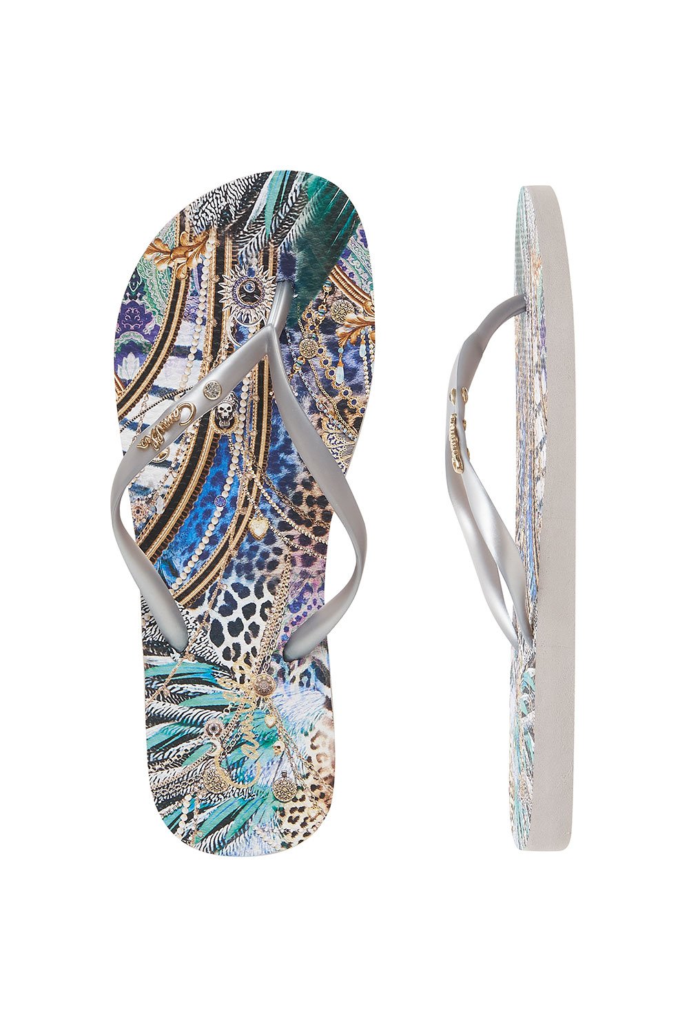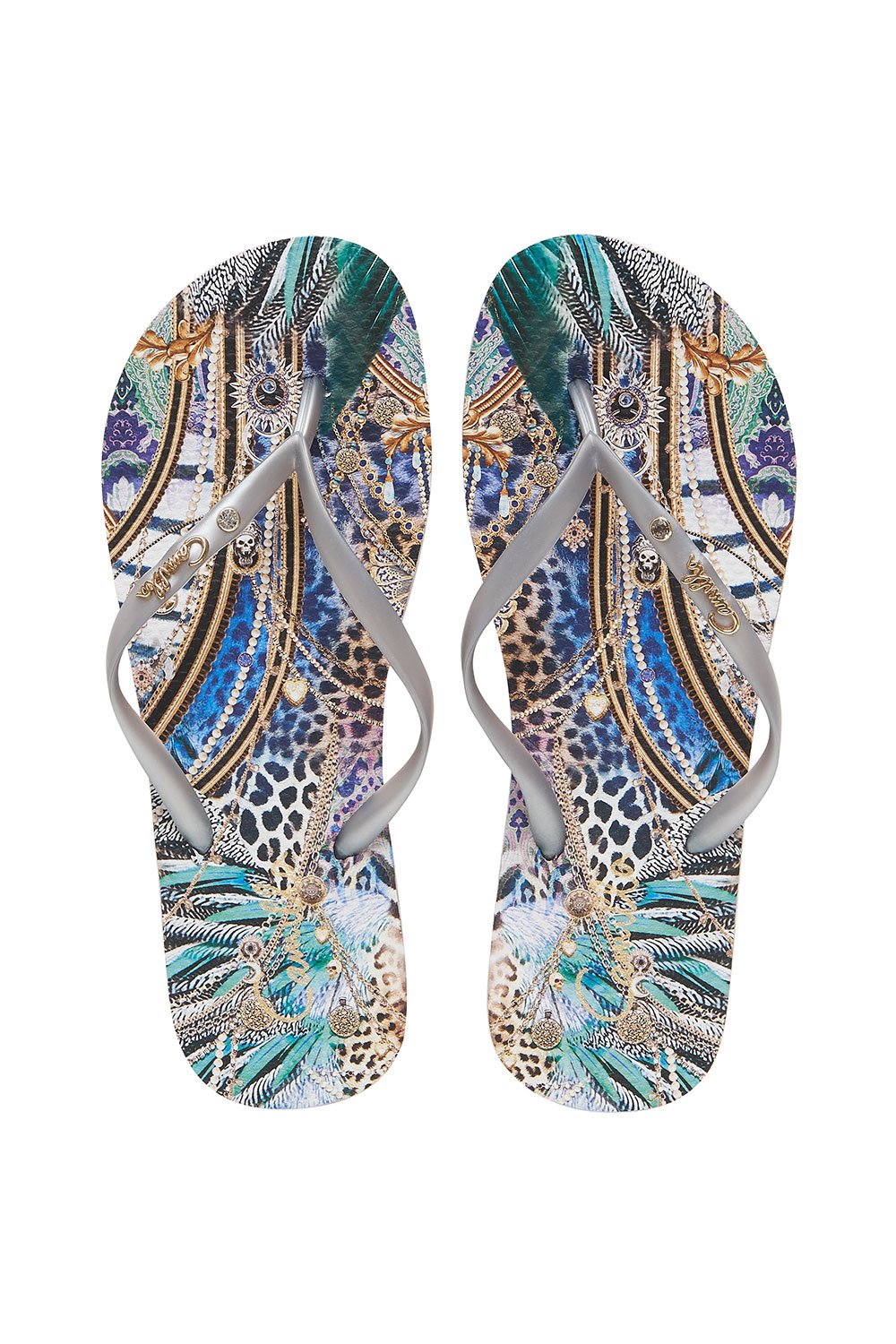 A CAMILLA summer essential reimagined each season, the Animal Army Thong is inspired by the anthem of a rock and roll revolution. Electric shades of blue and green dance with pops of animal print on