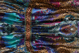 Add excitement to your every day with the Drop Crotch Slim Leg Pant in bold splashes of animal print amongst rich blues and purples. Waist ties, pockets and crystal detailing gives you comfortability without losing