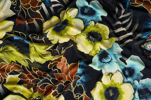Floral divinity meets our signature silhouette, the Poppy Divine Slim Fit Kaftan With Split is enveloped in midnight tones defined by poppies blooming in shades of lemon and soft cyan. Hand-embellished with CAMILLA crystals, this