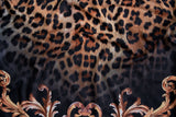 A fiercely feminine printed water bottle, the Running In The Wild Drink Bottle echoes a classic leopard print highlighted by golden baroque flourishes intertwined with find chain and precious charms. A silicone seal ensures there