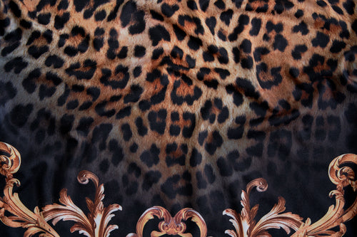 A fiercely feminine printed water bottle, the Running In The Wild Drink Bottle echoes a classic leopard print highlighted by golden baroque flourishes intertwined with find chain and precious charms. A silicone seal ensures there are no leaks whilst double wall vacuum insulation keeps beverages cold for 24 hours or hot for 12. This sleek design is crafted to fit all standard cup holders. Take with you to your next yoga session along with the matching printed yoga mat.