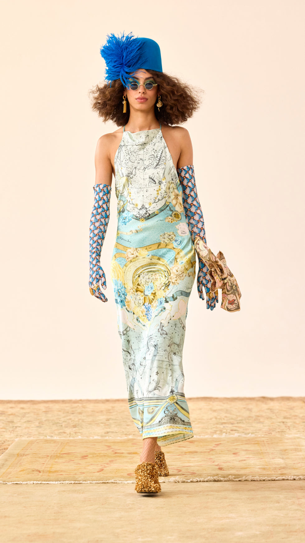 The My Lucky Stars Long Robe With Tie is a handcrafted silk silhouette designed by our in house artisans. Reimagined in an exclusive limited edition print, our longline robe features a sculpting wrap front, lapel
