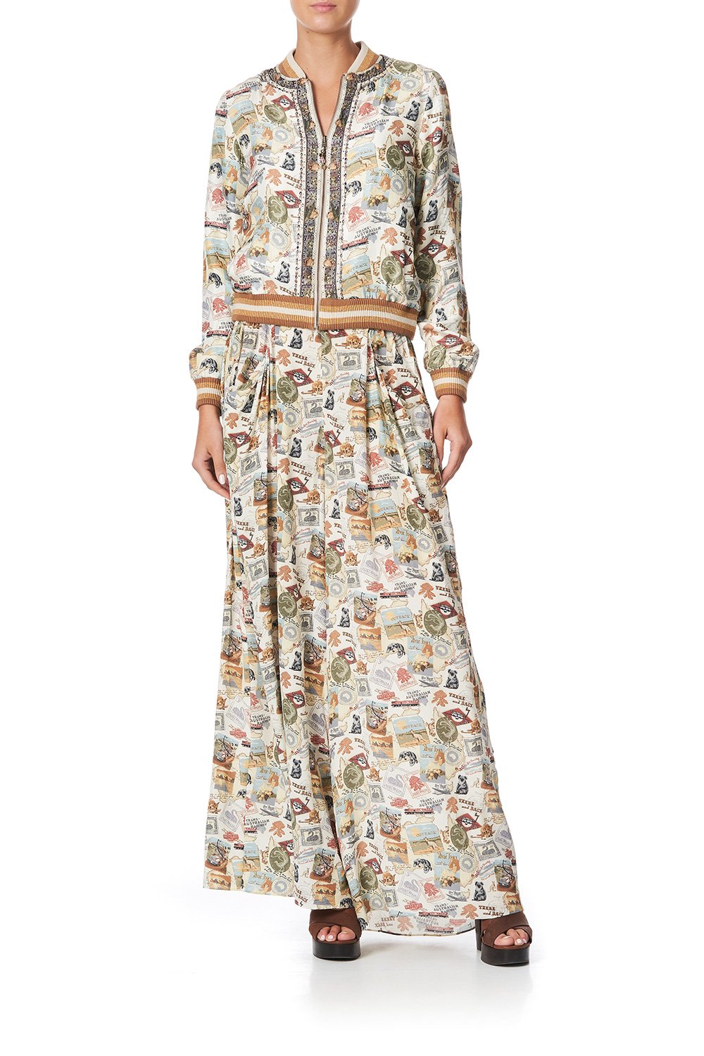 In loving tribute to the novelty patches and cheerful memories collected whilst on long drives across Australia, the Wish You Were Here Bomber Jacket celebrates Australiana. This silk jacket features a practical front pockets, ribbed cuffs at hem and neck, digitally printed silk, as well as neckline crystals as detail.