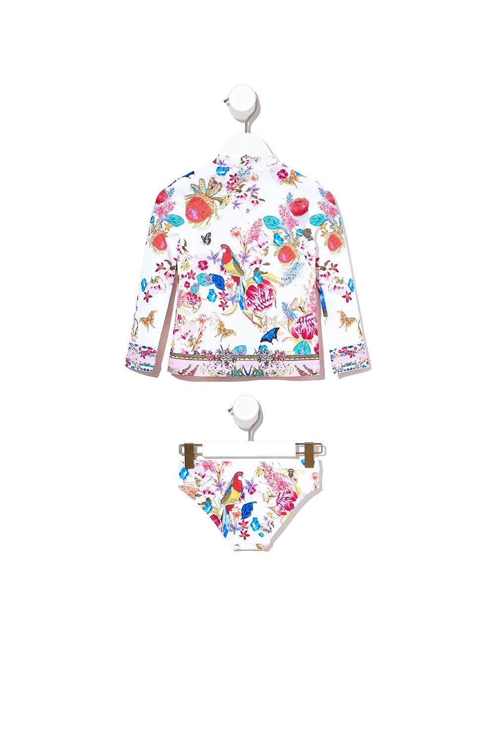 One for the tiny sun chasers, the Homeward Found Infants Zip Rashie And Pant set is a playfully plush tribute to the dreamy pastel colour palettes of Australia's flora and fauna. Boasting a vibrant feature