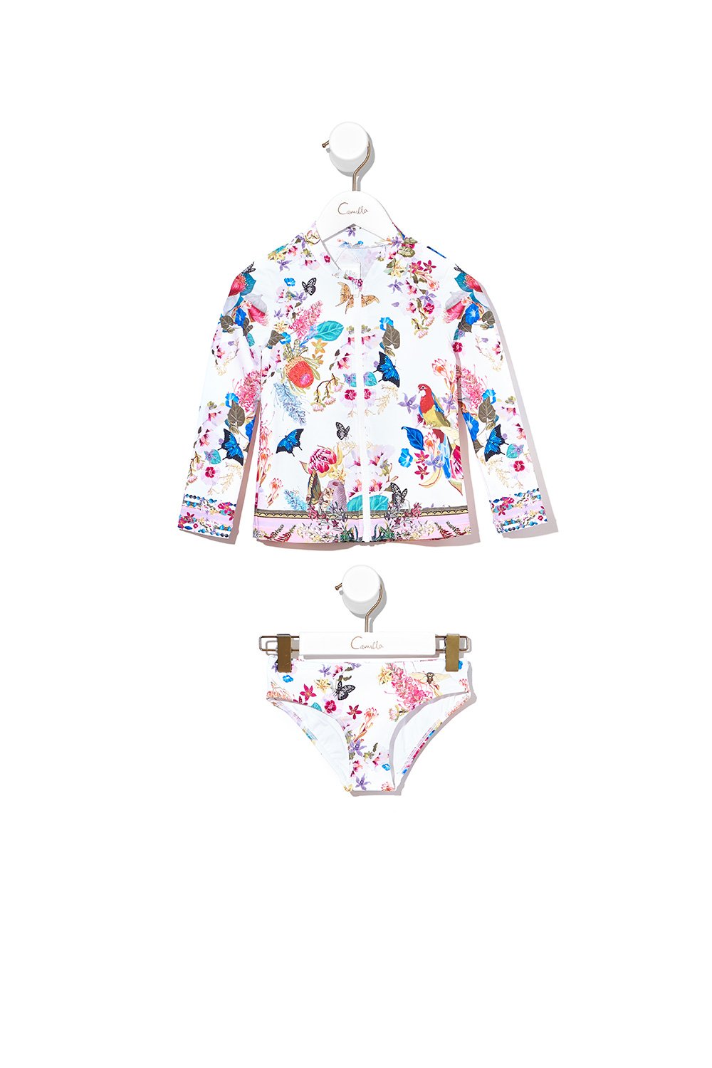 One for the sun chasers, the Homeward Found Kids Zip Rashie And Pant set is a playfully plush tribute to the dreamy pastel colour palettes of Australia's flora and fauna. Boasting a vibrant feature placement