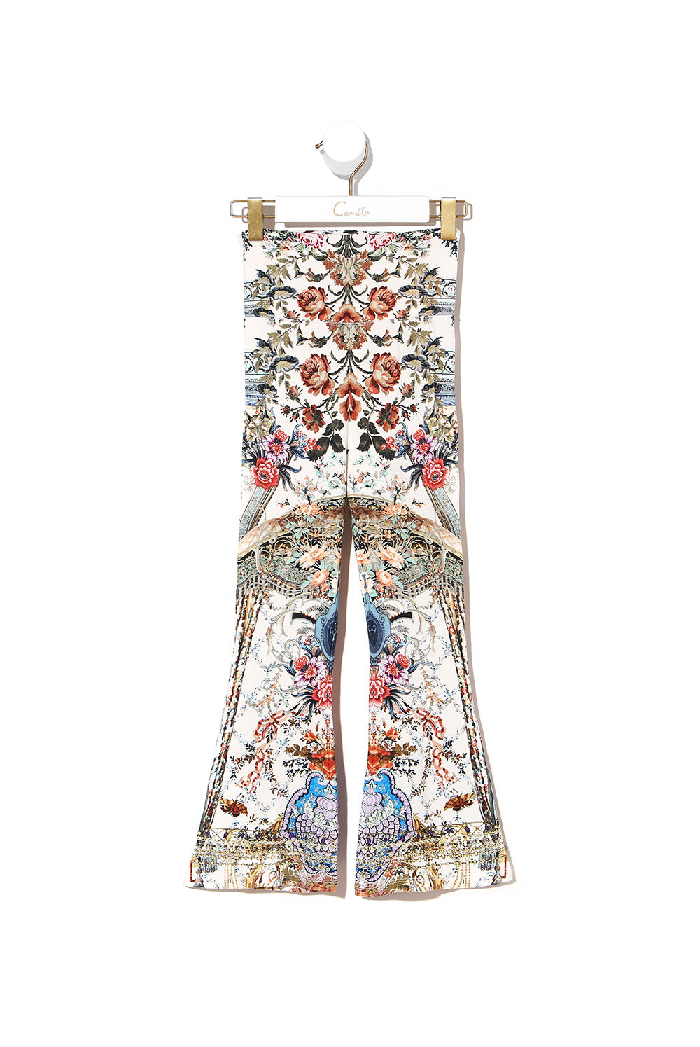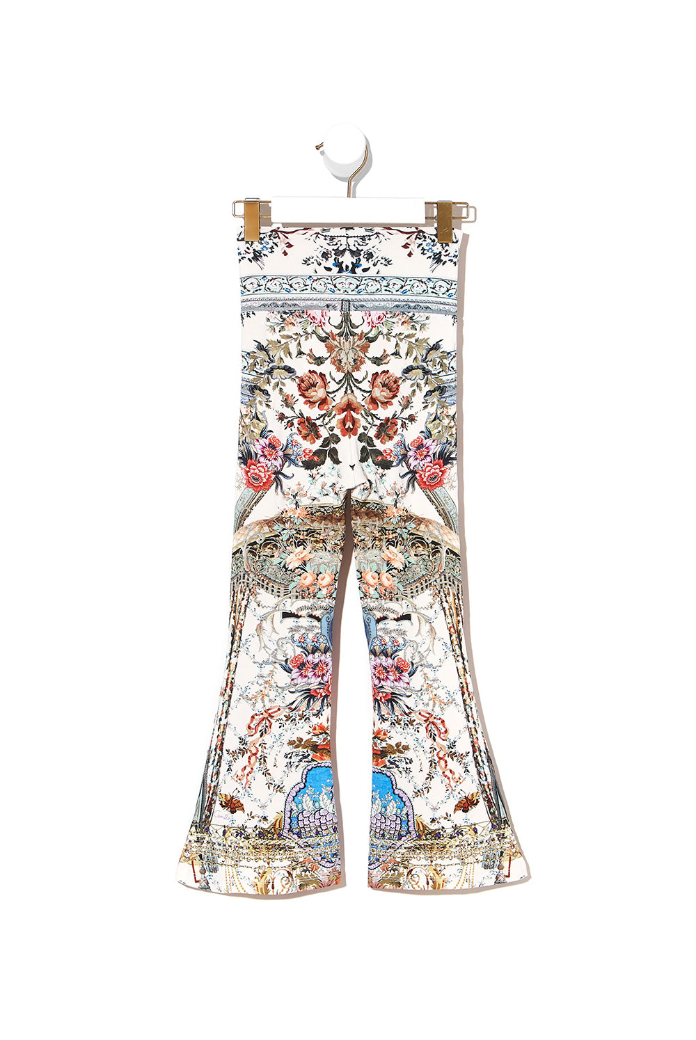 With periwinkle blues and baby pink flourishes, the Southern Belle Kids Roll Waist Flared Leggings are proudly lush. These printed trousers feature an all-over print, flare leg style in a soft, stretch signature print fabric.