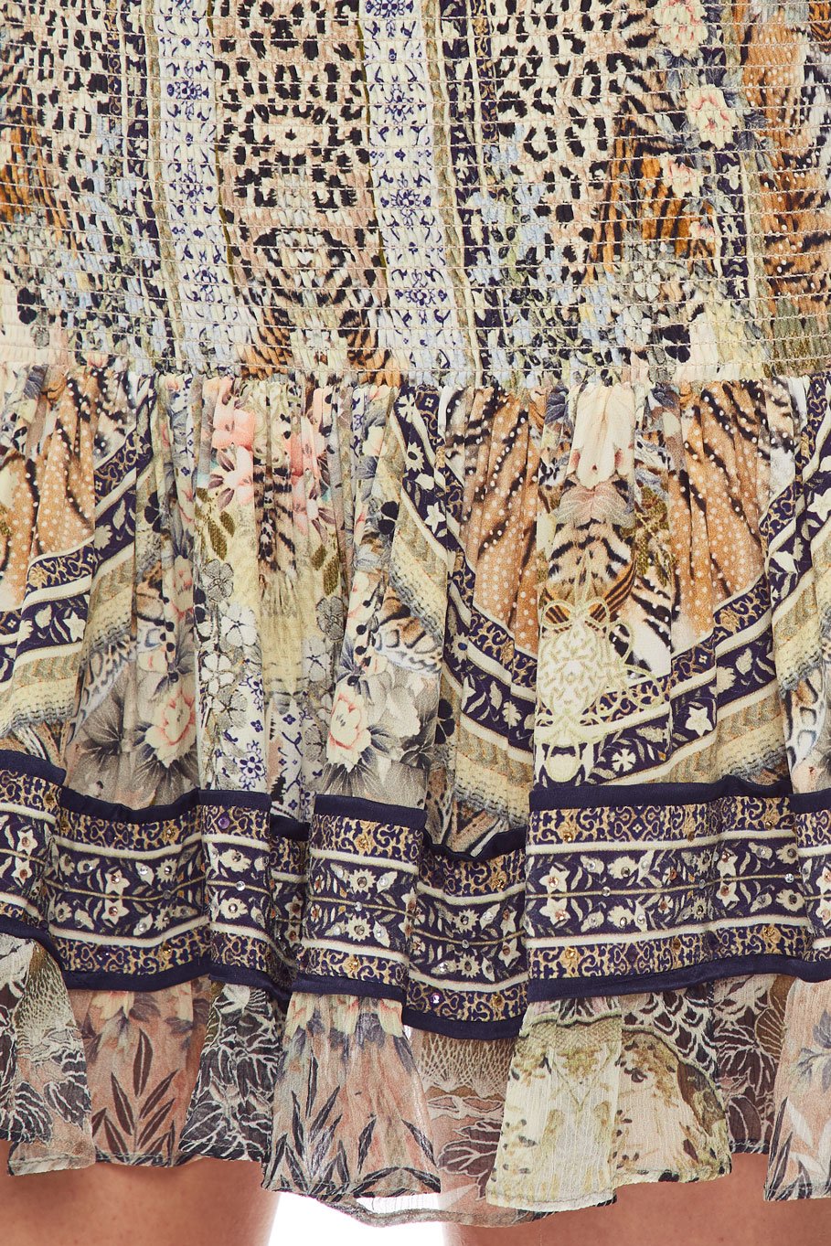 Chasing moments of rebellious youth, the Moto Maiko Short Shirred Skirt evokes the whimsical wonder of captivating Japan in an enchanting painterly print. Adorned with a wide shirred waistband, crystal embellished details and an exquisite contrast-print panel, this beguiling short length mini is finished with a softly flared hemline, perfect for revealing a sensuous glimpse of skin.