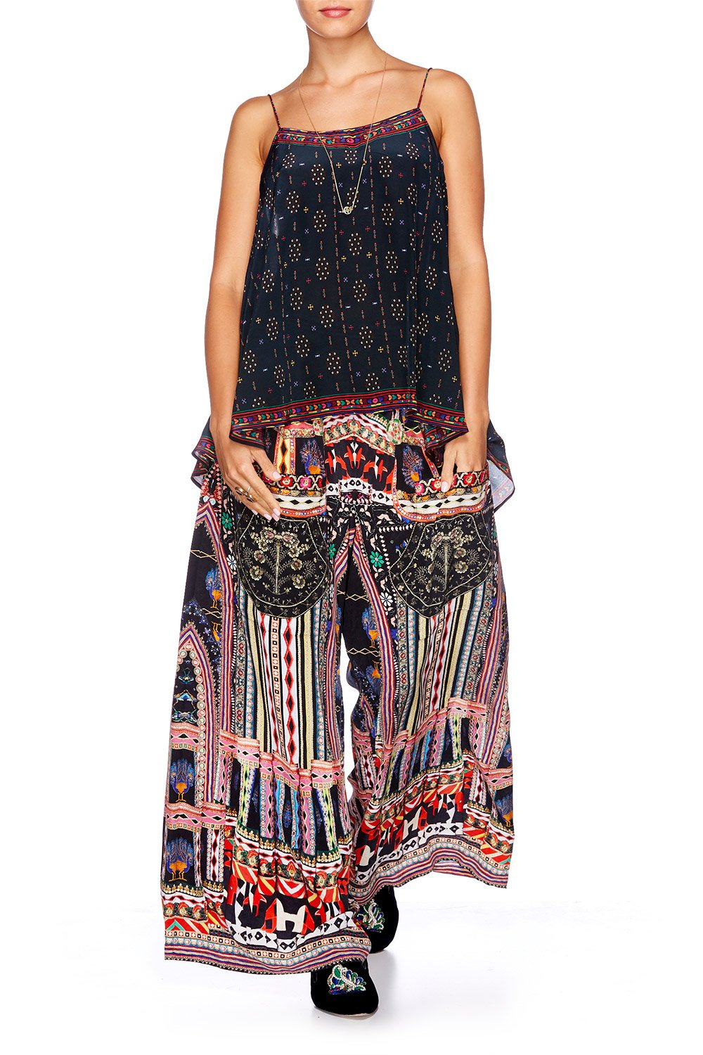 Drawing on Camilla’s passionate connection to music and dance, the Dancing On My Own Wide Leg Trouser evokes the traditional costumes of the street dancers of India, Camilla’s beloved second home, in a flourish of